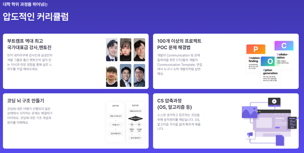 부트캠프 1위, 비전공자 1위의 책임감! 개발자 100% 취업보장 코딩과 상관없는 인생을 살아왔어도 모두 압도적인 개발자로 성장할 수 있습니다.